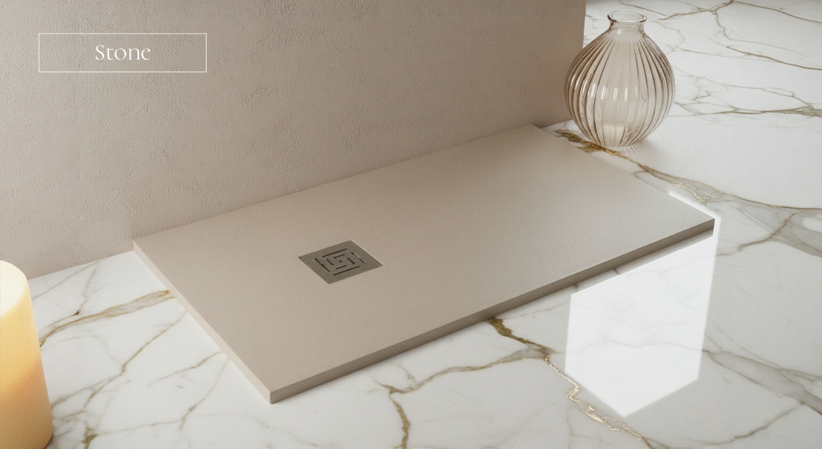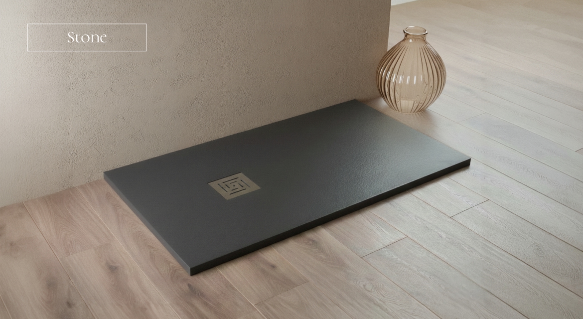 La superficie antiscivolo effetto pietra conferisce piacevolezza al tatto, non è porosa e grazie al mix di materiali non trattiene residui e calcare. Disegnata dai designer OSB la speciale griglia in acciaio che, attraverso un sofisticato gioco di pieni e vuoti, dona luminosità e interpreta uno stile riconoscibile.